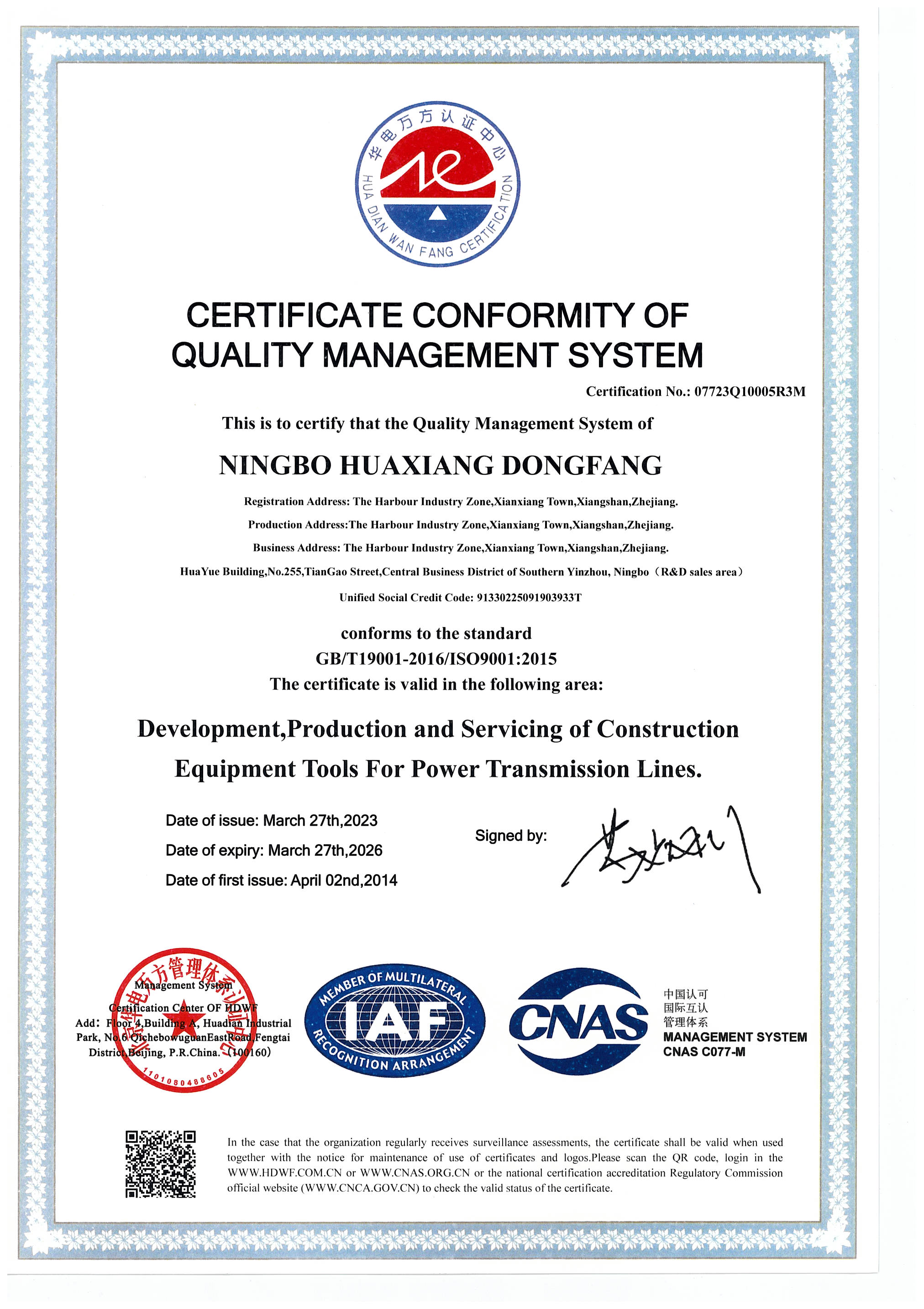 公司生产包括用于基础施工、杆塔组立、架线施工、电缆光缆施工等23大类2000余种施工机具,能提供全套特高压线路施工机具。 产品行销全国各个省、市、自治区的5000余家电力和通讯企业,并远销全球60余个国家和地区。多年来一直和参与境外电力工程承包的中国大型企业紧密合作。 践行“实干兴业,荣辱与共”的企业精神,宁波华翔东方电力机具有限公司将以崭新的姿态迎接机遇与挑战,艰苦奋斗,开拓创新,以客户需求为己任, 一如既往的向您提供先进的、优质的产品和服务;公司将继续发力自身的生产制造优势,保持一站式产品供应,满足国内外客户一站式采购需求。