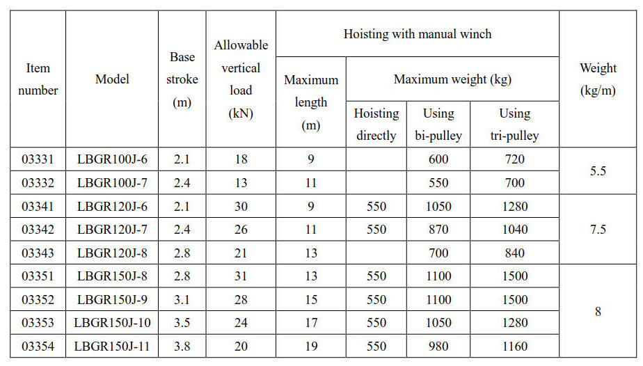 • Recommend using 7mm steel wire rope,the workable lenght is 9 times the length of the gin pole