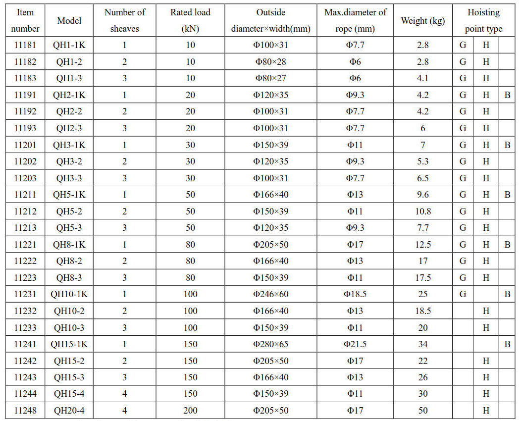 • hoisting point type : hook style G), round eye style (H), clevis type (B).