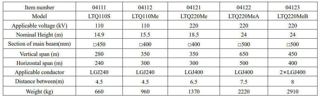 Model TQ110S is single leg structure. The rest are portal –framed structure.